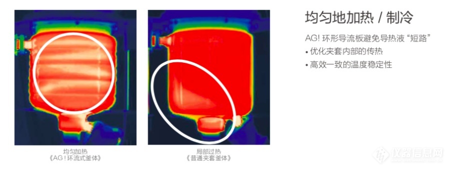 從熱力圖中我們明顯能夠看出,AG!獨(dú)有的環(huán)形導(dǎo)流板技術(shù),能夠顯著提升加熱效率,節(jié)省控溫過程的時(shí)間。